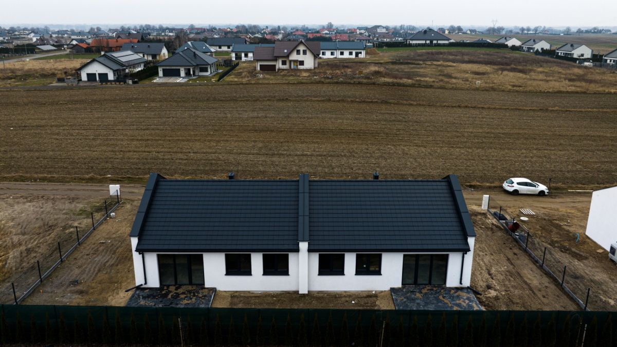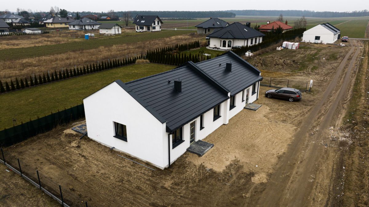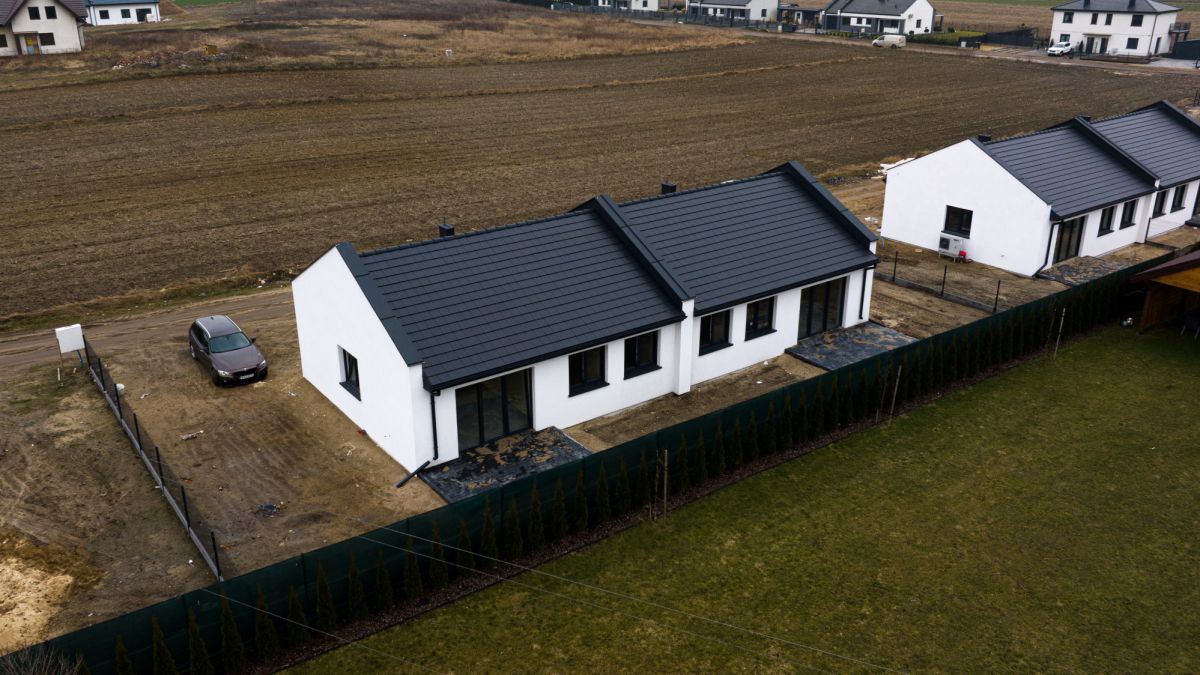 Nowoczesny i funkcjonalny dom parterowy w zabudowie bliźniaczej o powierzchni 72 m², wykończony pod klucz. Nieruchomość została wybudowana w 2025 roku oraz jest położona na osiedlu w spokojnej okolicy, z szybkim dojazdem do miasta. Na działce jest możliwość zaparkowania samochodu. Dom znajduje się 10-15 minut samochodem od miasta Konin. Przemyślany, rodzinny układ pomieszczeń, niskie koszty eksploatacji oraz nowoczesne instalacje sprawiają, że to świetna propozycja na lata. Ogłoszenie zawiera zdjęcia dwóch lokali mieszkalnych, dwie połówki bliźniaka.