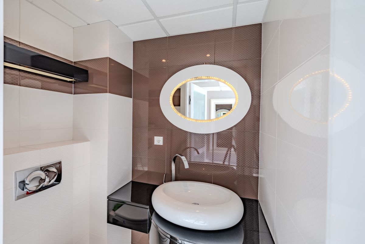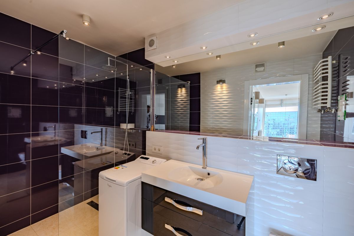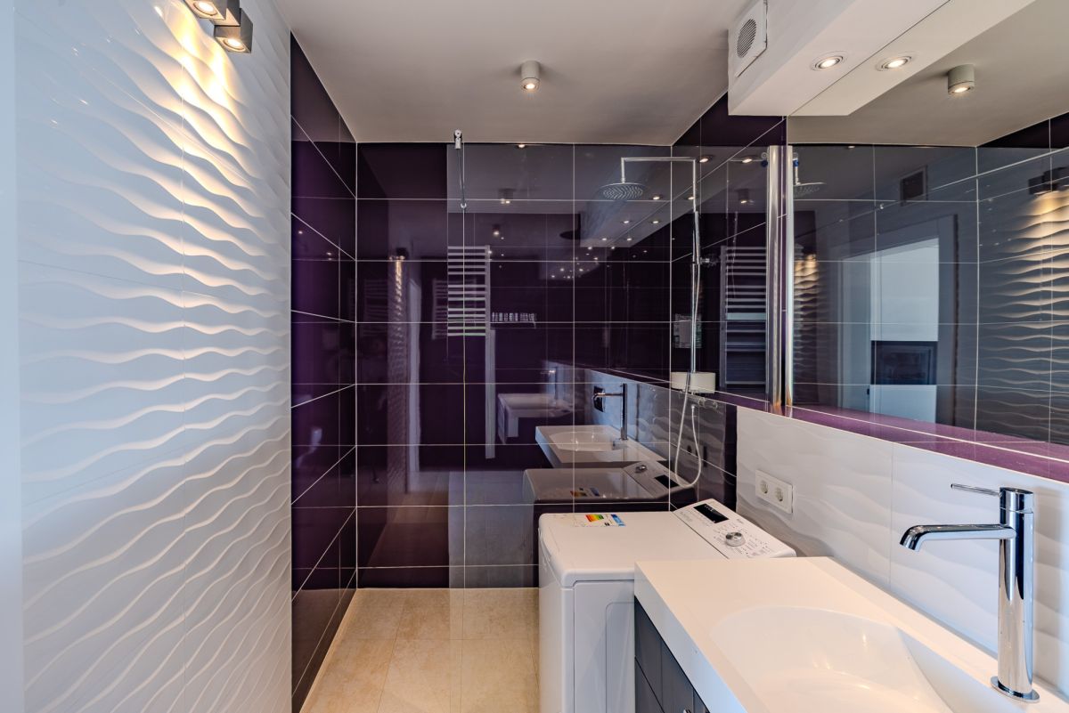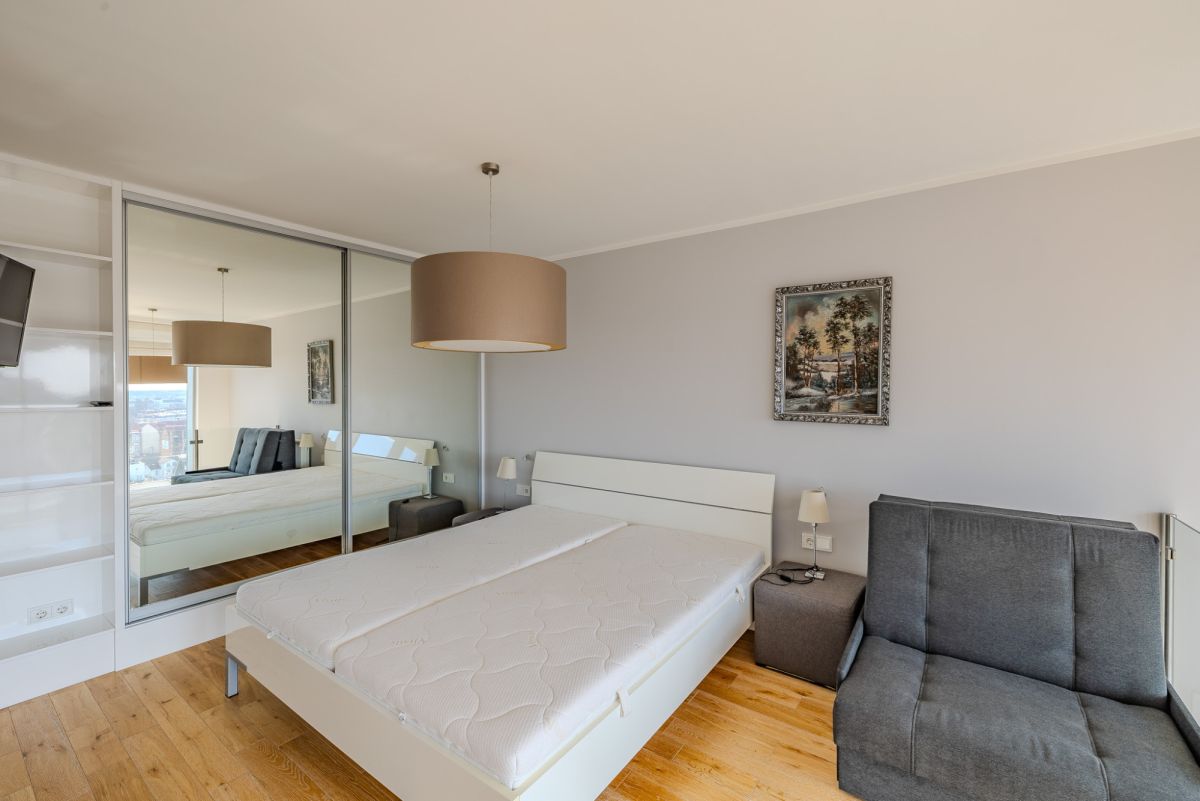 Apartament został zaprojektowany jako przestrzeń dwupoziomowa, co w połączeniu z wysokością sięgającą około 5,8 m zapewnia wyjątkowe poczucie przestrzeni i doskonałe doświetlenie wnętrza.