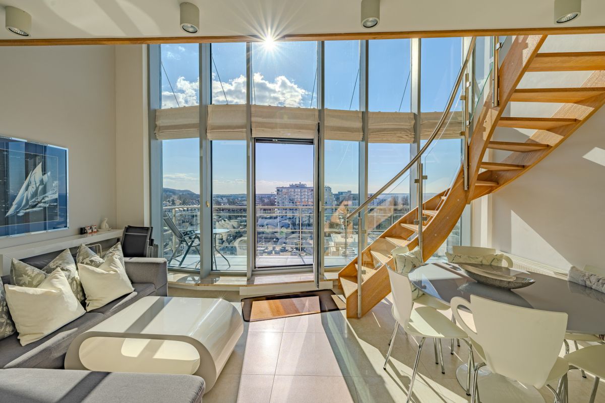 Na sprzedaż wyjątkowy, dwupoziomowy apartament typu penthouse, położony w jednej z najbardziej prestiżowych lokalizacji w Międzyzdrojach. Nieruchomość wyróżnia się ponadstandardową wysokością pomieszczeń, panoramicznymi przeszkleniami oraz niezakłóconym widokiem na morze i miasto.