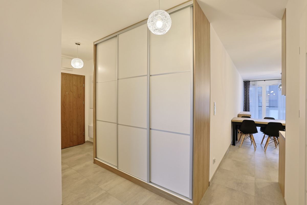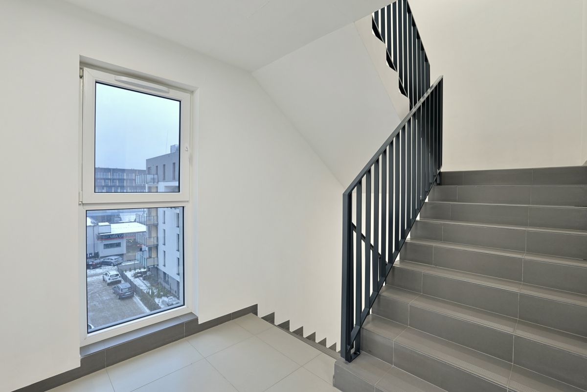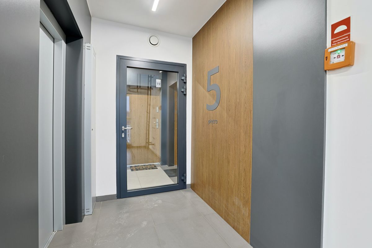 Na piętrze znajduje się tylko jedno mieszkanie obok, co zwiększa poczucie prywatności i spokoju.