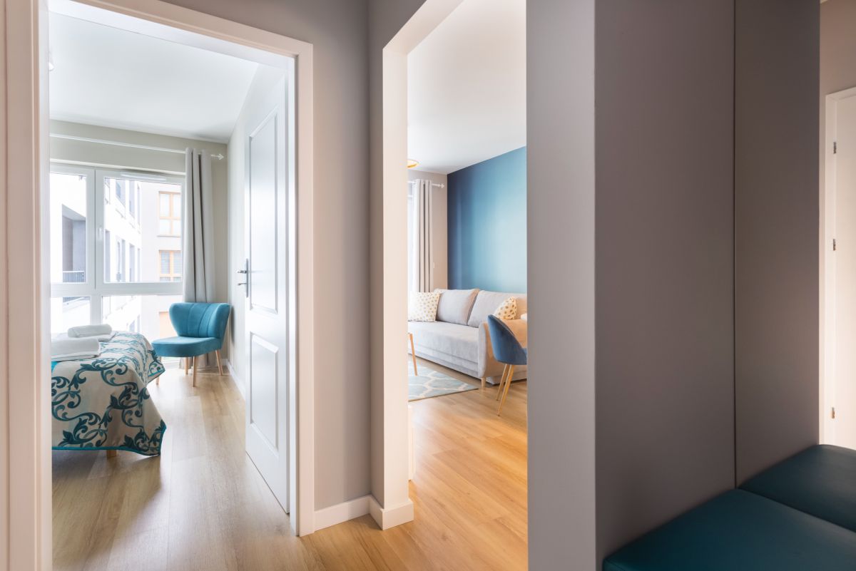 Osiedle oddane w 2019 roku jest cenioną lokalizacją. Kontrola dostępu, monitoring, duże podwórka obsadzone roślinami i hala garażowa pod budynkiem - to wszystko wpływa na prestiż tego adresu. Korytarze i części wspólne są zadbane. Dla komfortu mieszkańców na parterze znajduje się market Netto.