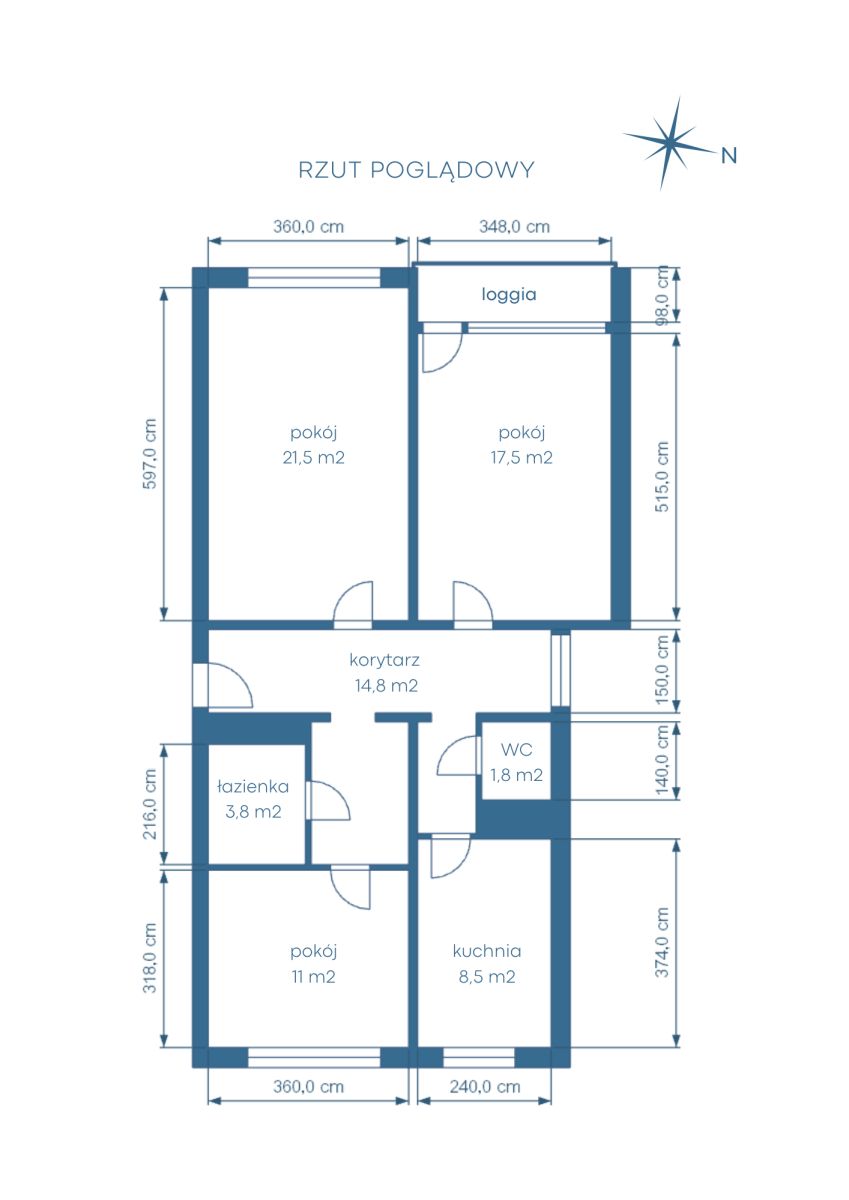 Opis lokalu (powierzchnie pomieszczeń widoczne na rzucie mieszkania): Mieszkanie o powierzchni 77,2 m2 składa się z: • dużego salonu z wyjściem na balkon • przestronnej sypialni • standardowej sypialni • oddzielnej jasnej kuchni • oddzielnej jasnej kuchni z oknem • łazienki z prysznicem • oddzielnego WC • przestronnego korytarza z szafami w zabudowie