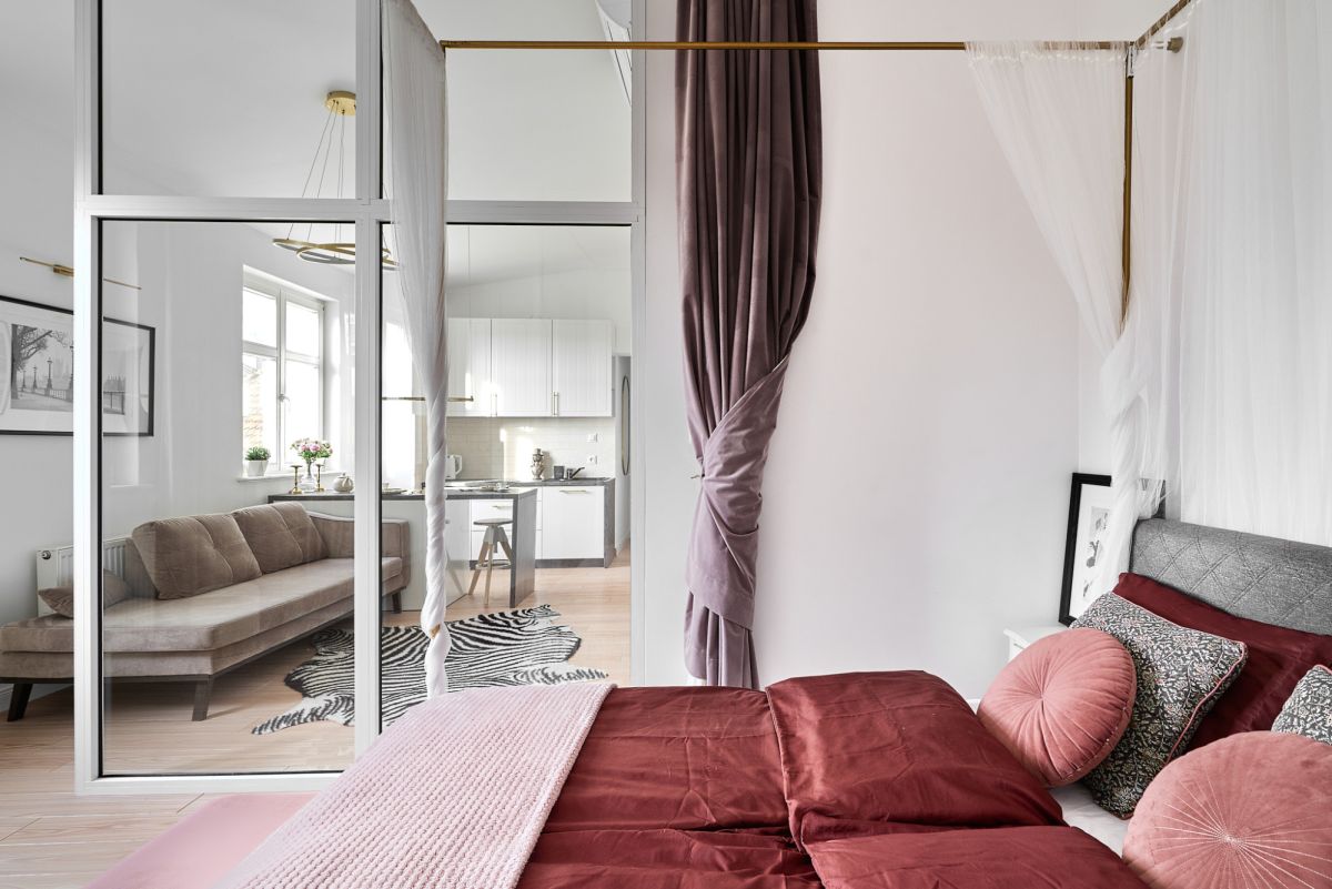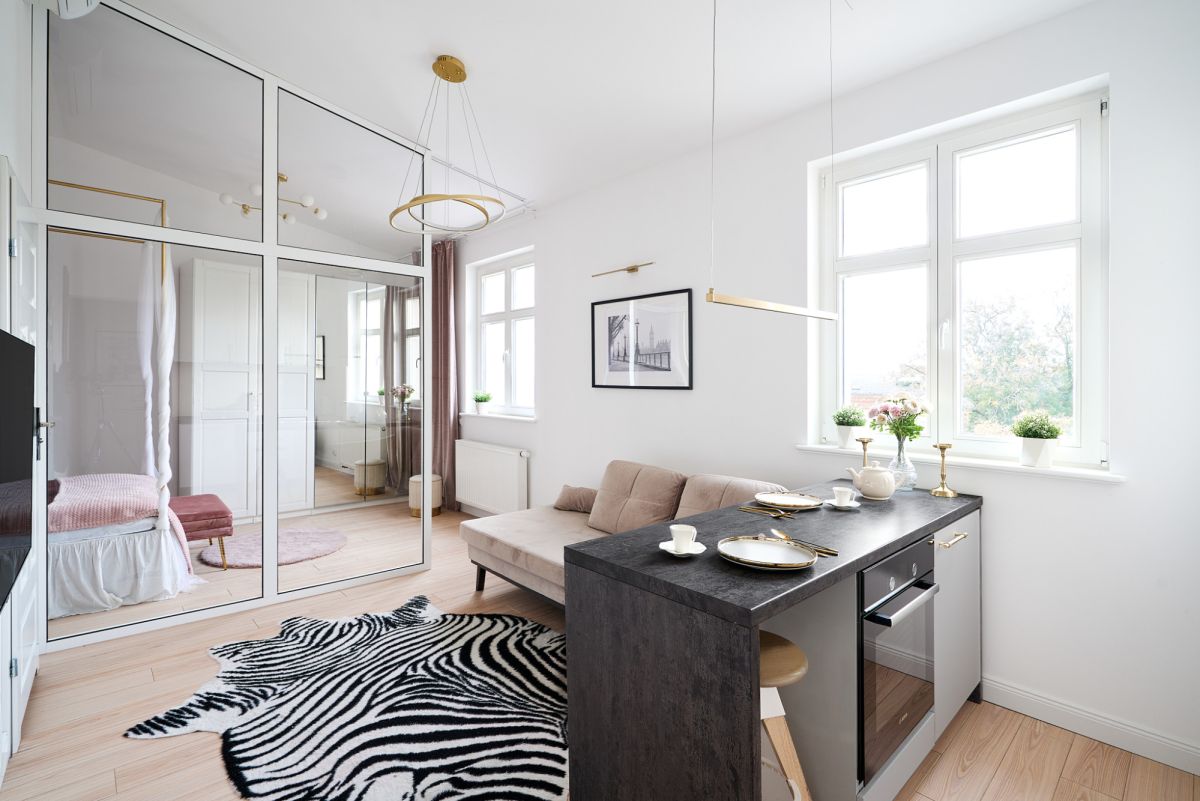 Ta klimatyczna kawalerka z wydzielonym miejscem na sypialnię, o powierzchni 34 m², położona jest na 3. piętrze w samym centrum Poznania, w prestiżowej kamienicy Wicherkiewiczów.