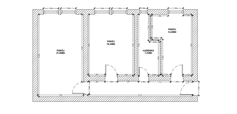 - trzy przestronne pokoje: 25 m², 17 m² i 12 m² - otwartą kuchnię z holem - 13 m² - dużą łazienkę - 8 m² - piwnicę
