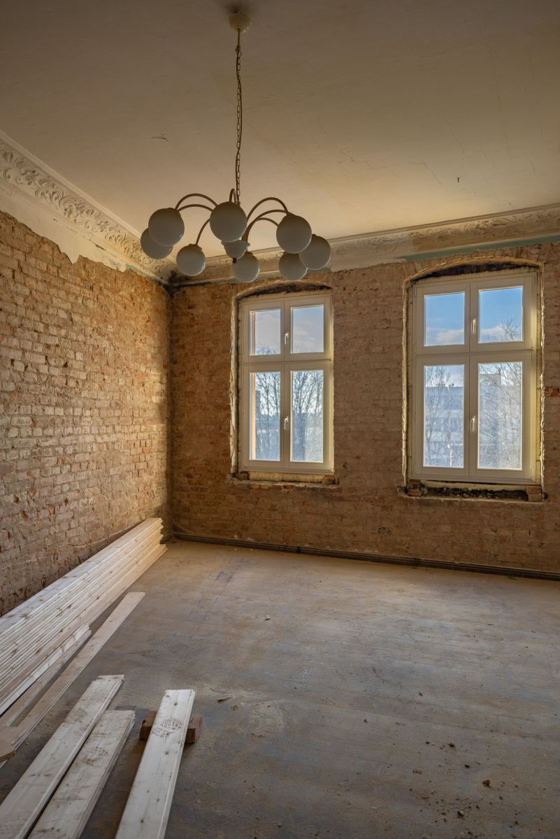 Wysokie pomieszczenia charakterystyczne dla kamienic pozwalają uzyskać poczucie przestrzeni, którego brakuje w nowym budownictwie.