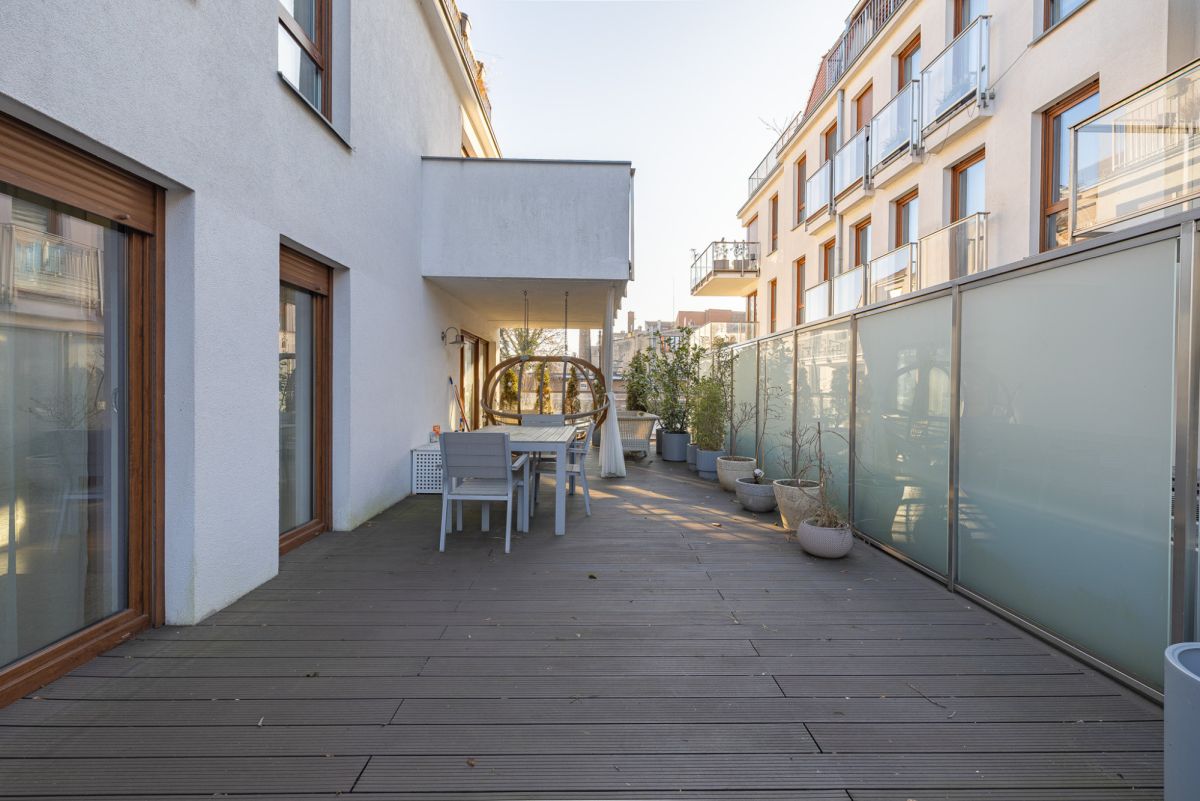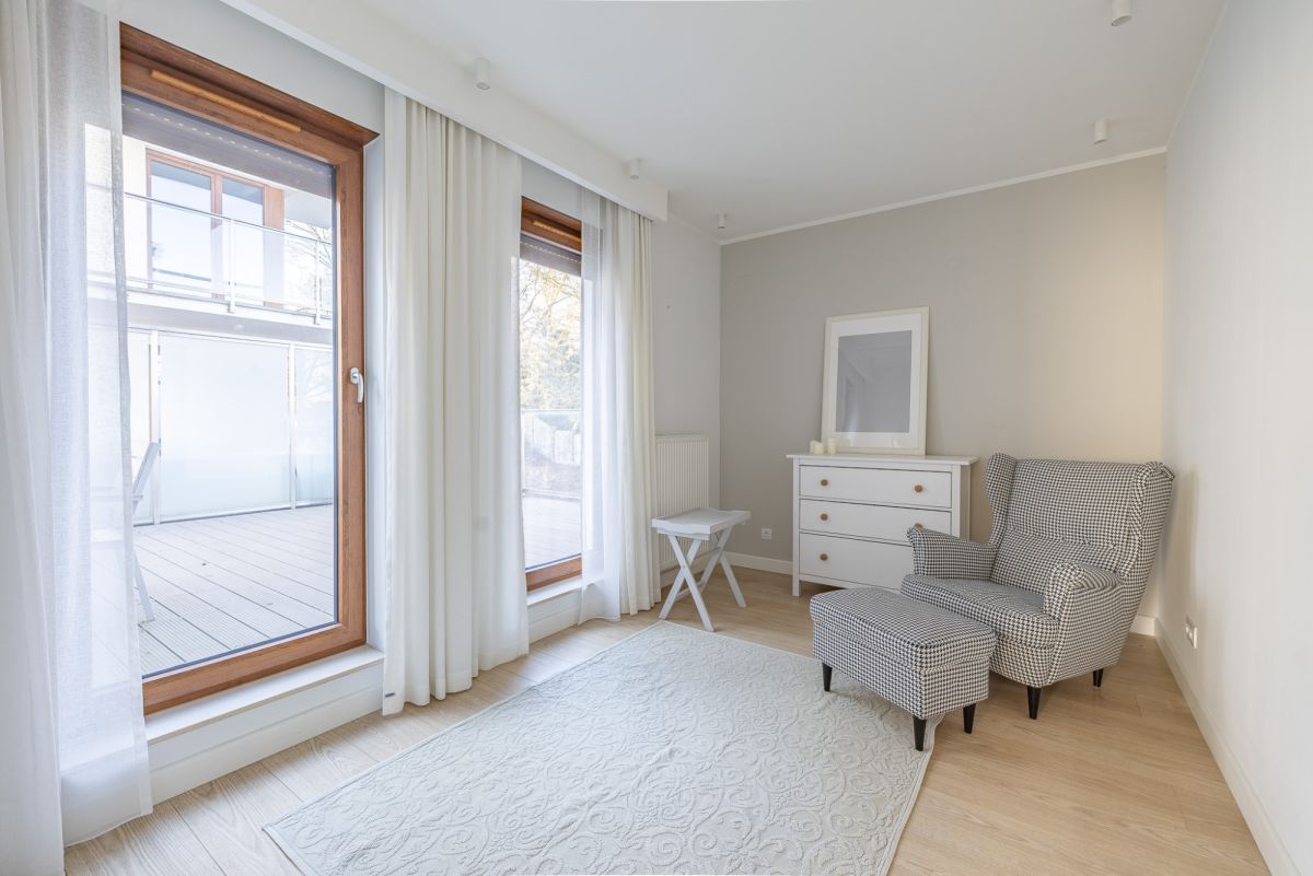 Apartament oferuje: - przestronny salon z nowoczesną kuchnią i częścią jadalnianą oraz pięknymi dużymi oknami - dwie duże, ustawne sypialnie - bardzo dużą, komfortową, dużą łazienkę - imponujący taras ok 30m2 z widokiem na Kościół św. Wojciecha i zieleń - Miejsce postojowe oraz komórke lokatorską w cenie